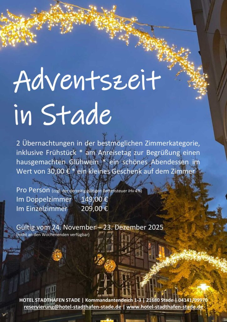 The reception staff will be happy to answer your questions and requests at any time on 04141 / 9997-0. However, if the staff is not able to answer the phone at the moment, we kindly ask you to book directly via the homepage or to send us an e-mail via: „Ihre Anfrage im Hotel Stadthafen Stade“. We will answer them as soon as possible.