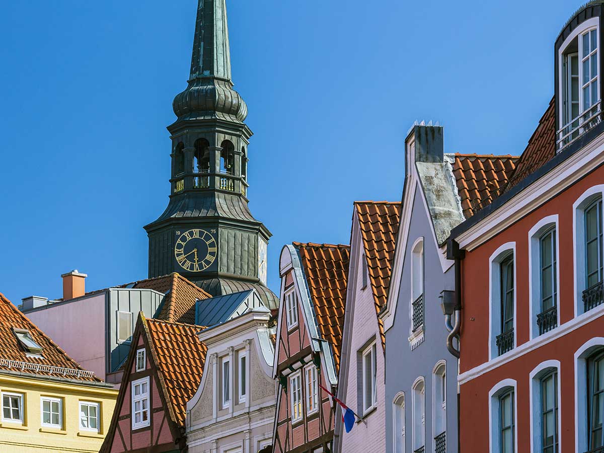 The Hanseatic city of Stade with its lively old town lies on the Schwinge River which flows into the Lower Elbe only a few kilometers away. The surrounding landscape is characterized by the orchards and farms of the Alte Land.